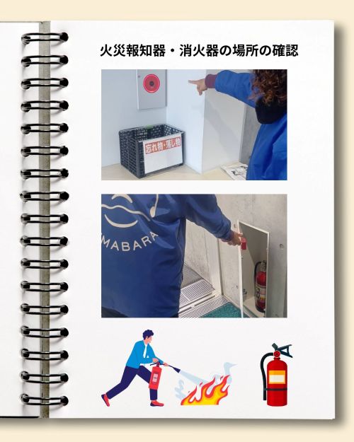 また、火災報知器・消火器の場所や使い方も改めてチェック。